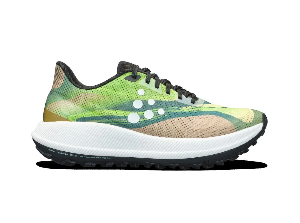 Xplor je hybridní novinka, která navazuje na naší nejměkčí a nejpohodlnější botu - Craft Pacer. S touhle botou na nohách se můžeš těšit na nové tlumení, nový tvar i nový pocit z běhu. Craft Xplor vychází se stejného základu jako Pacer a nabízí stejně nekompromisní měkkost i pružnost tlumící vrstvy, takže se při běhu budeš cítit jako v bavlnce. Rozdíl hledej v agresivnějším vzorku a pevnějším svršku. Xplor je hybridní botou, která je jako doma na asfaltu, ale nezalekne se ani lehkého trailu. Podešev je od legendární značky Vittoria, která patří mezi nejuznávanější výrobce cyklistických plášťů na světě. Absolutní přilnavost za sucha i mokra je tak u Craft Xplor samozřejmostí. Svršek obsahuje několik chytře umístěných výztuh, které dodávají stabilitu potřebnou pro běh v terénu a zároveň nesnižují celkový komfort boty. Xplor tě nadchne nízkou hmotností, vysokým komfortem i vysokou dynamikou díky použité pěně PX s vynikající energetickou návratností. Nejvíc se tahle hybridní bota hodí pro nabíhání volných kilometrů, ale nezklame ani při rychlejším tréninku.Váha: 300 g (UK8)Drop: 6 mm