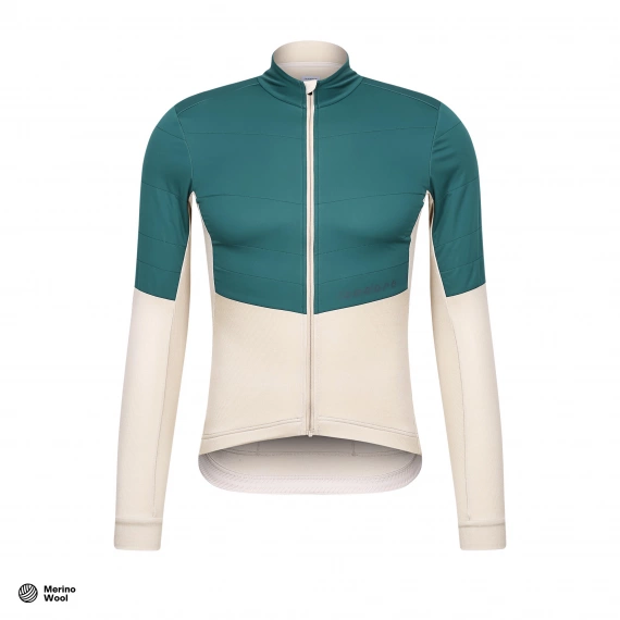 Merino dres do mírné suché zimy, který tě spolehlivě ochrání před nápory větru.Hřejivá merino vlna o tloušťce vlasu 18.5 mic. zajišťuje správnou termoregulaci a udržuje optimální tělesnou teplotu i v chladnějších podmínkách. Přidaná membrána na hrudi, ramenech a rukávech zdvojuje materiál a zabraňuje průniku větru. Tři zadní kapsy poskytují dostatek prostoru pro snacky na dlouhé hodiny na cestě a reflexní branding tě činí viditelným v provozu.