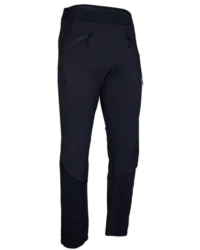Tiniso jsou pánské plně zateplené skialpinistické kalhoty určené pro náročné podmínky a aktivní pohyb v přírodě. Vyrobené z lehkého a odolného materiálu Woven Ultra Light a podšité tenkou izolací Primaloft® Evolve Insulation Active, poskytují vynikající tepelný komfort, udržují tělo v teple a zároveň zajišťují prodyšnost a nízkou hmotnost – ideální pro intenzivní fyzickou aktivitu. Přední strana je vybavena kapsami na zip YKK VISLON® pro bezpečné uložení věcí a větracími otvory na stehnech na zip pro efektivní regulaci teploty při strmých stoupáních. Spodní část nohavic má praktické zipy pro snadné nazouvání přes lyžařské boty a vnitřní oblast nohavic je vyztužena odolným materiálem Oxford pro dlouhou životnost. Elastický pas se stahovací šňůrkou umožňuje pohodlné nošení, zatímco poutka lze použít k připevnění kšand pro větší stabilitu během pohybu. Reflexní detaily zvyšují viditelnost a bezpečnost za zhoršených světelných podmínek. Anatomický střih, pružné materiály a promyšlené detaily dělají z Tiniso spolehlivého společníka pro skialpinismus a další outdoorové aktivity, který poskytuje ochranu před větrem, tepelný komfort a volnost pohybu.