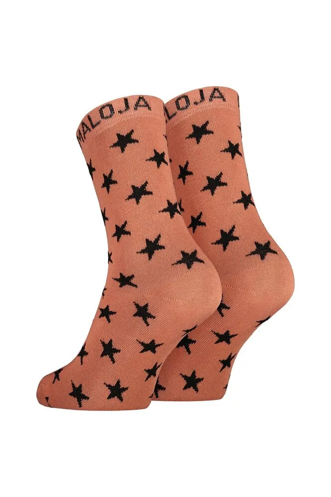 Moderní delší bavlněné ponožky se vzorem hvězdiček. Nápis Maloja na horním lemu.