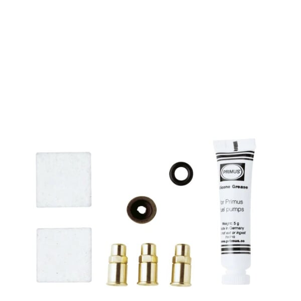 Servisní set PRIMUS pro vařič Gravity, obsahuje náhradní palivové trysky, vazelínu pro mazání palivové pumpy a dvě absorbční podložky pro předehřívání vařiče.