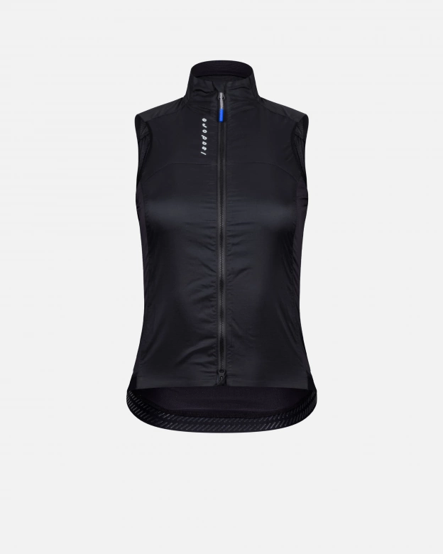 Materiál na bočních panelech a zádech je vysoce elastický, prodyšný a rychleschnoucí. Vesta je super lehká a skládací v zadní kapse. Doplněna recyklovanou silikonovou páskou na zadní straně a bocích a recyklovaným obousměrným zipem YKK™ NATULON® pro snadné zapínání.